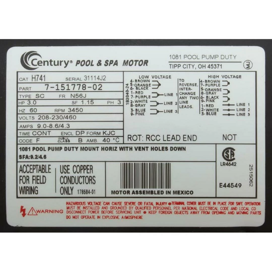 | Product Type: | Pool Motor |