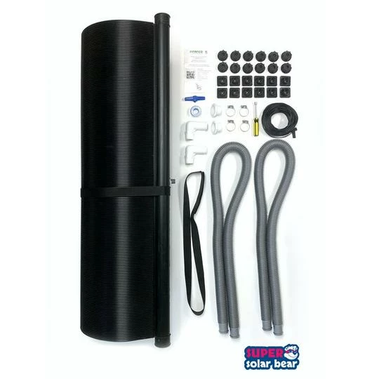 Let the Super Solar Bear solar panels heat your above ground swimming pool with FREE energy from the sun! This high-performance system heats all sizes (above ground pools) for a longer, more comfortable swimming season. It is compatible with all pool pumps and can even raise your temperature by up to 10 degrees WITHOUT gas lines and gas bills!