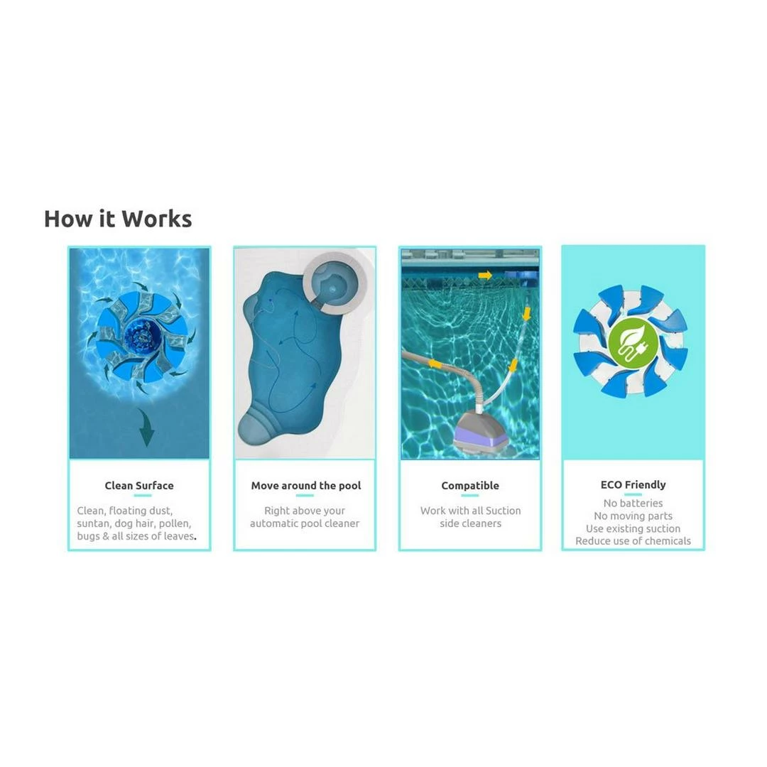 The SkimmerMotion easy attaches to your automatic pool cleaner to work in harmony for the cleanest pool you’ve seen at home!