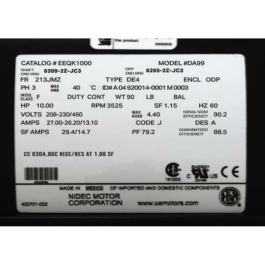 The Emerson JMZ-Frame Pentair Motor operates with aggressive performance and premium efficiency, making it one of the most reliable replacement motors on the market. Designed with a stainless steel shaft extension and permanently lubricated ball bearings, the Emerson JMZ-Frame Pentair Motor is built to last, operating consistently at a single speed with 7 HP and 230V. The Emerson JMZ-Frame Pentair Motor sports a sturdy base and special JMZ mounting for unbeatable installation and comes equipped with an open drip proof build for water damage prevention. For superior replacement motors, Pentair offers the best in mechanical equipment.